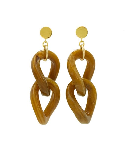 Deze oorbellen van Flo Jewelry geven een krachtige, moderne uitstraling met duurzame elegantie. De unieke gourmetschakel is vervaardigd uit gerecycleerd resin en heeft een subtiele twist in vorm en kleur.